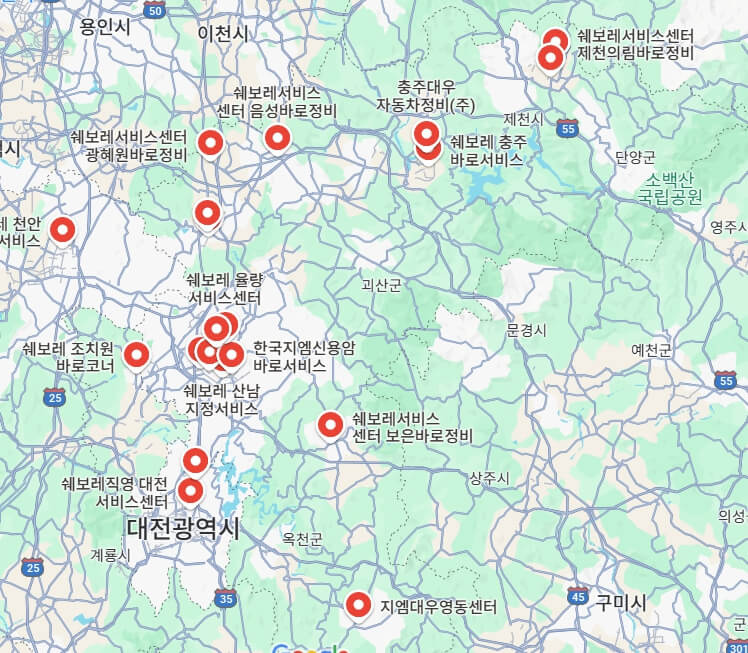 충청북도 쉐보레 서비스센터 목록